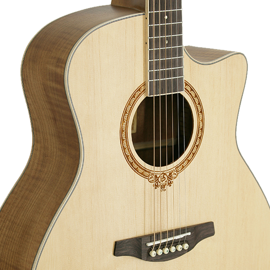 雲杉一般生長於高緯度、寒冷的地方,Soldin所採用之雲杉,重量輕,質地軟,紋理直,顏色淡黃,不易變暗。特色為明亮、敏銳、成熟的音色,中頻的部份也比一般常見的西特加雲杉豐富。雲杉的開聲時間較長,隨著彈奏者的使用時間越長,吉他的音色可以有很好的表現。